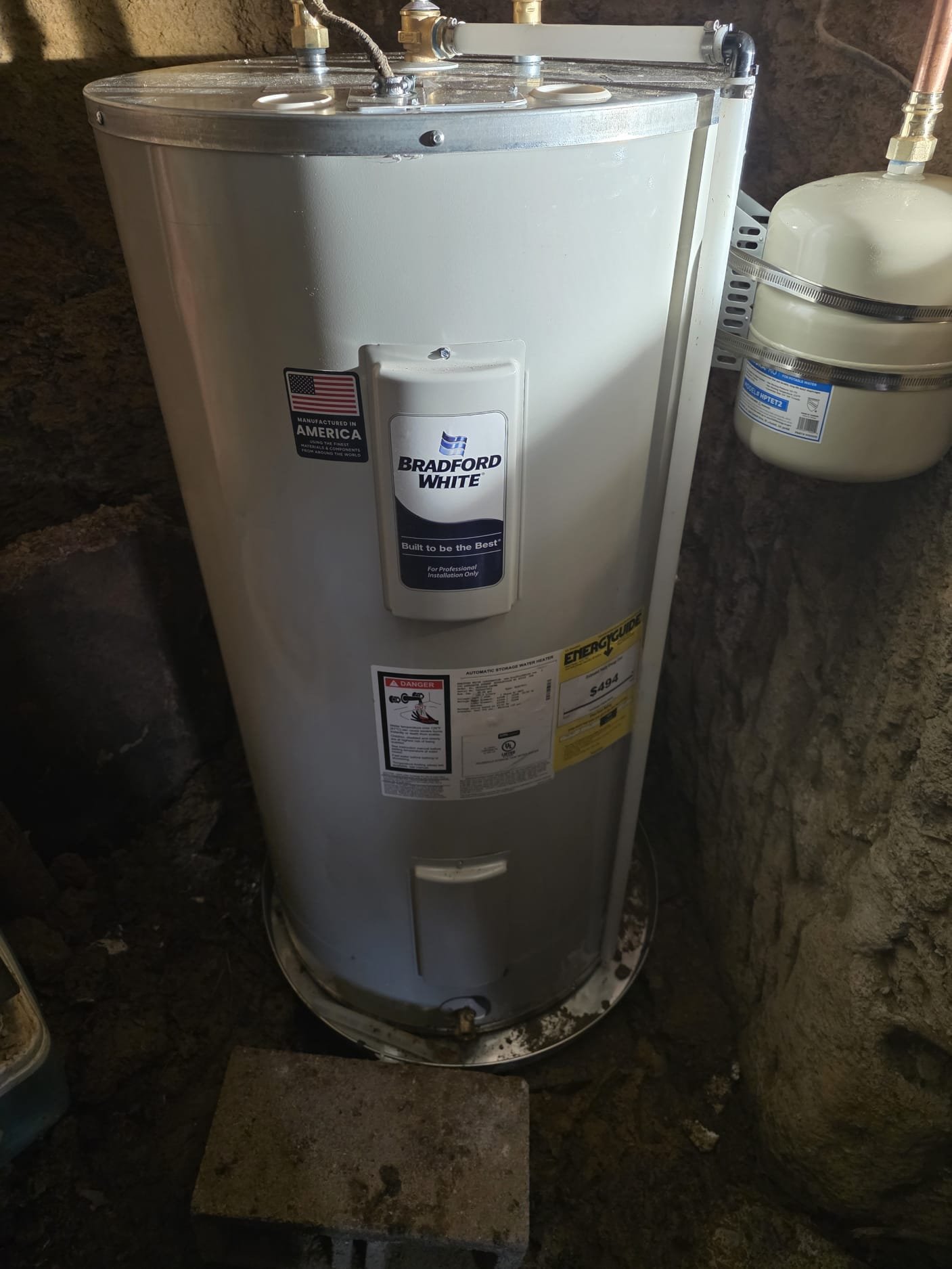 - A water heater that needed a properly sized safety pan, disconnect, and an expansion tank